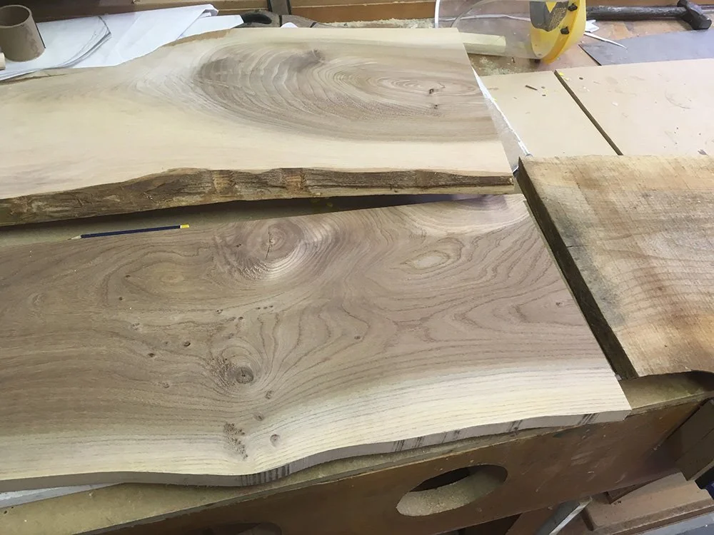 Elm bench - partially lathed and wedged legs